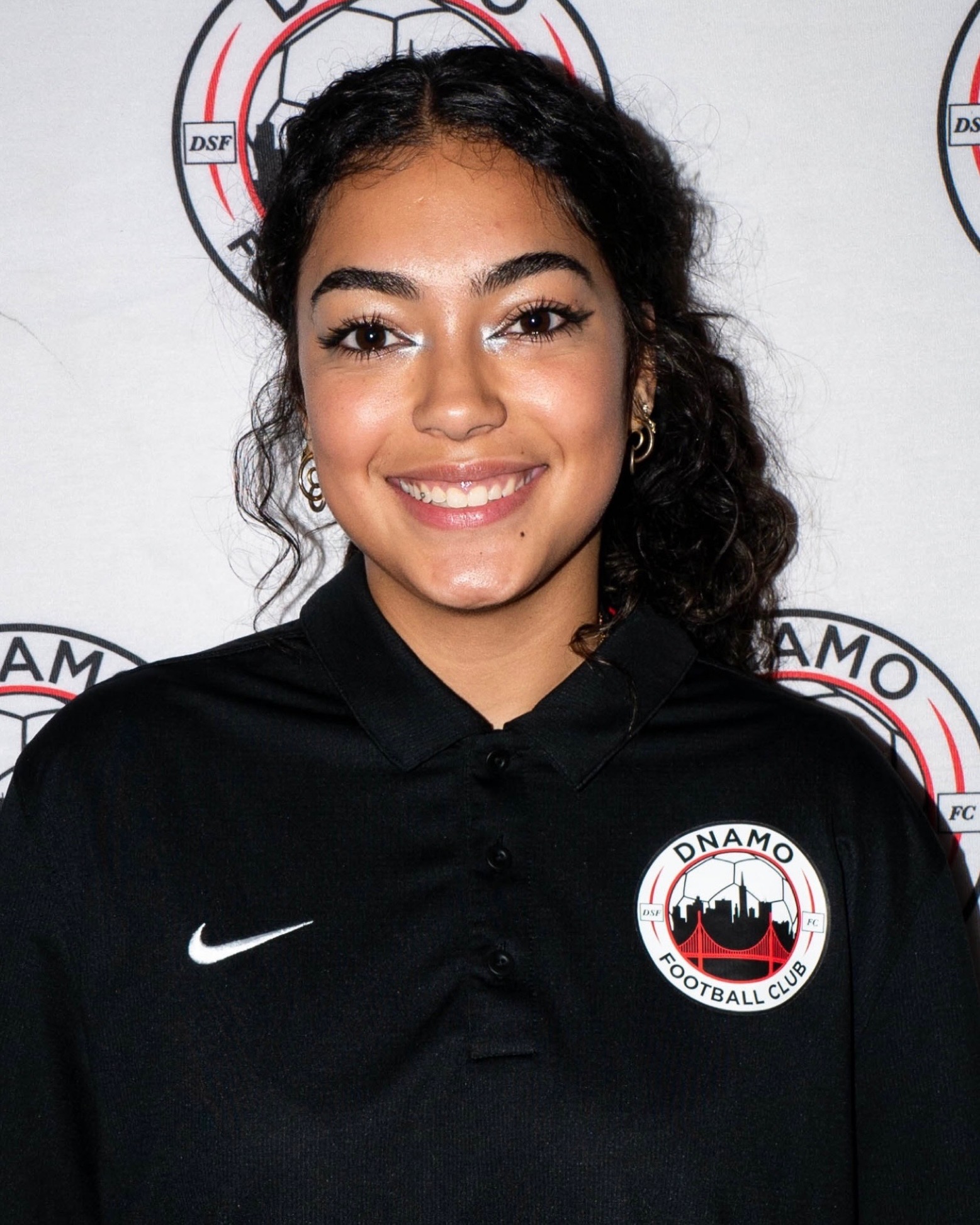 Charlotte Thelen, known as Coach Charlie, is all the way from Vail, Colorado. She has been playing or involved in soccer since she was three. She has coached, played, refereed, and organized. She runs the SFSU women’s soccer club and has also competed in soccer at the junior college level. She joined the Dynamo team in Fall 2025. Coaching lets her give a new generation the same love for soccer that she found when she was young. She aims to help in the development and skills of young players.